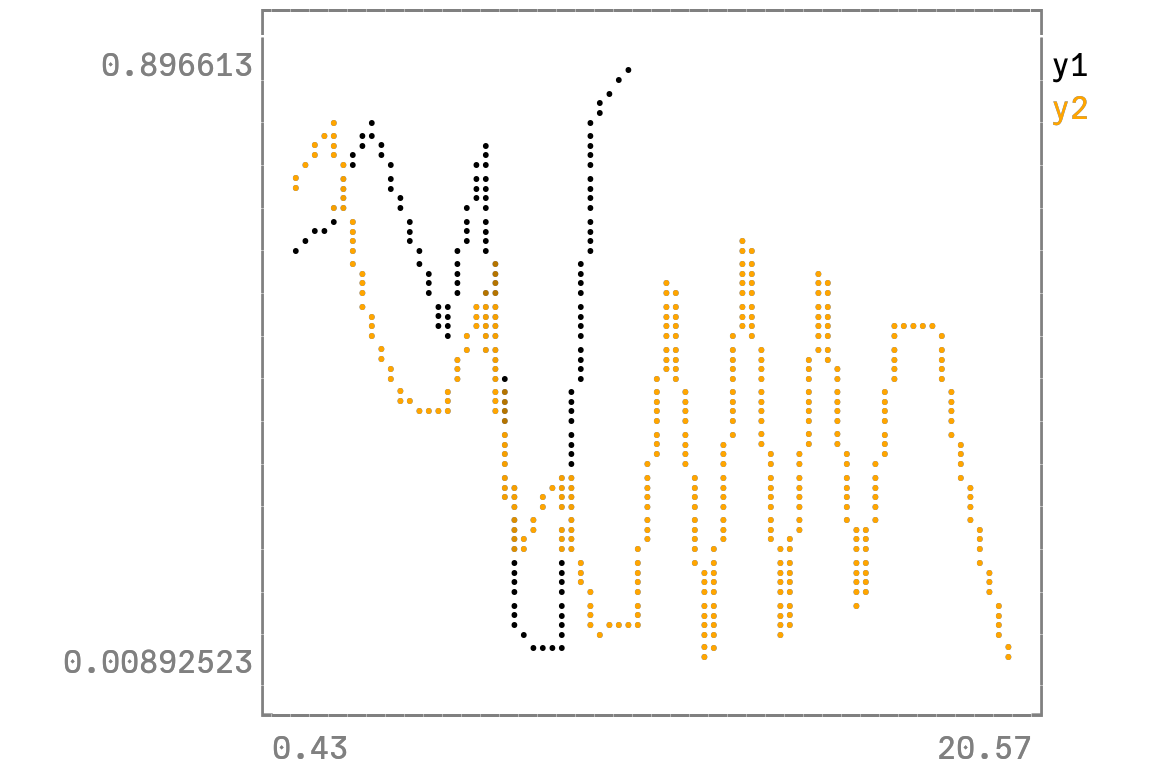 plot([rand(10), rand(20)], color = [:black :orange], line = (:dot, 4), marker = ([:hex :d], 12, 0.8, Plots.stroke(3, :gray)))