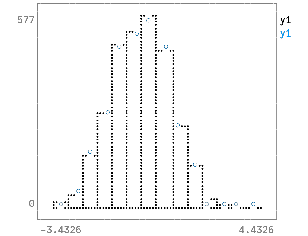 unicodeplots()histogram(randn(1000), bins = :scott, weights = repeat(1:5, outer = 200))