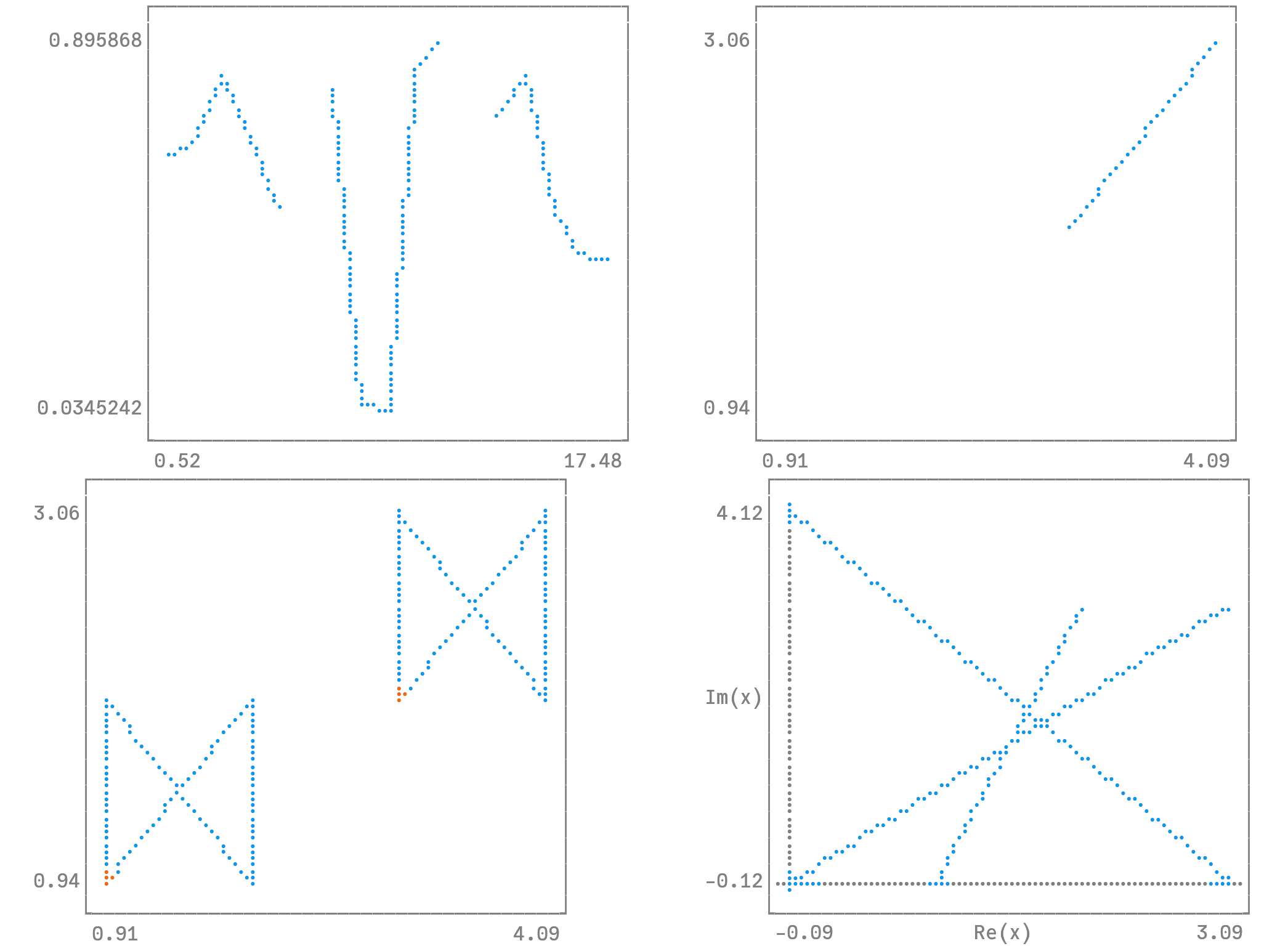 plot(plot([rand(5); NaN; rand(5); NaN; rand(5)]), plot([1, missing, 2, 3], marker = true), plot([x; NaN; x .+ 2], [y; NaN; y .+ 1], arrow = 2), plot([1, 2 + 3im, Inf, 4im, 3, -Inf * im, 0, 3 + 3im], marker = true), legend = false)